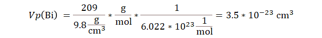 volumen promedio que ocupa un solo átomo de bismuto?