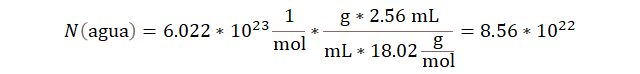 tanto, hay 8.56 x 1022 moléculas de agua.